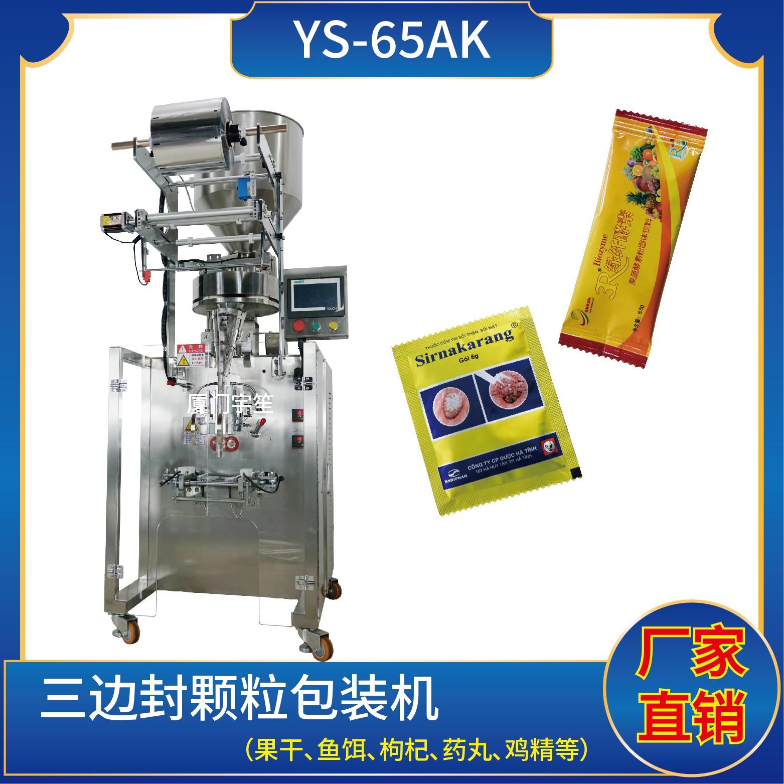 YP-65AK 三邊封顆粒包裝機特 點 1、適用于食品、醫(yī)藥、化工、化妝品行業(yè)中顆粒物品的計量包裝。2、可自動完成制袋、計量、下料、封合、分切、計數、且可根據客戶要求配置打印批號等功能。3、觸摸屏操作,PLC 控制,驅動步進電機控制袋長,性能穩(wěn)定、調整方便、檢測準確。智能式溫控儀,PID調節(jié),保證將溫度的誤差范圍控制…